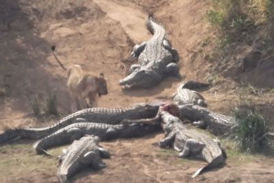 Lion vs 12 crocodiles: wild footage of unforgiving nature