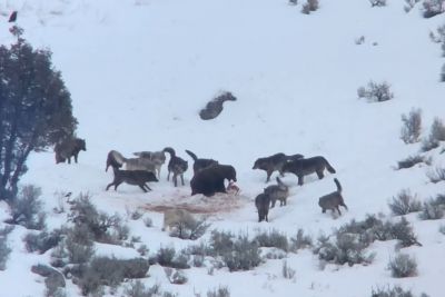 Wolf Pack Surrounds Grizzly Bear In Yellowstone National Park