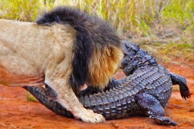 Lions Attack Crocodile Walking On Their Land