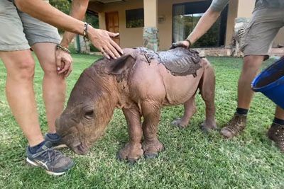 Orphaned Baby Rhino Enjoys Her First Mudbath