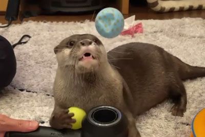 Otter Makes Everyone Laugh While Watching A Flying Ball