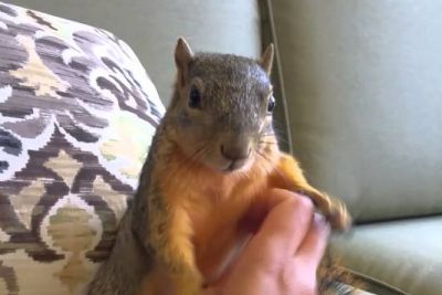 Pet Squirrel Waits At The Door Every Morning For A Breakfast Peanut