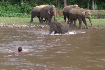 Elephant Thinks Man Is Drowning, Comes To The Rescue