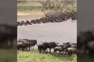 Wildebeest Crossing In Tanzania's Lamai Wedge