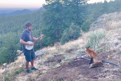Musician's Banjo Playing Attracts A Wild Fox