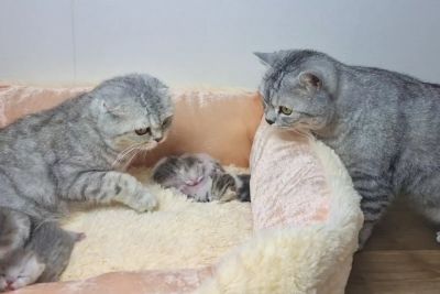 Dad Cat Meets His Newborn Kittens And Kisses Mom Cat