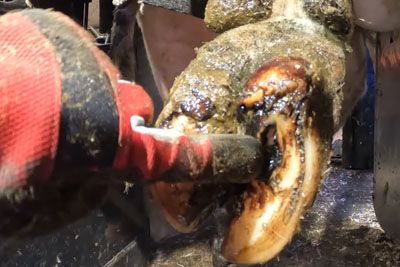 Guy Pulls A Huge Tooth Out Of A Cow's Foot