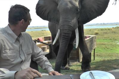 Zimbabwe Bull Elephant Crashes Into Tourists Eating Food