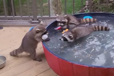 Raccoons Have Some Serious Fun Inside A Small Pool