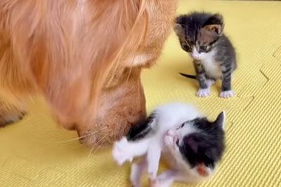 Golden Retriever & His Bestie Found Abandoned Kittens And Bring Them Home