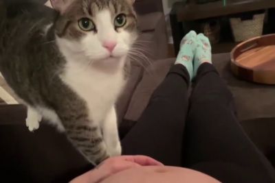 Sweet Cat Just Realized It's Owner Is Pregnant