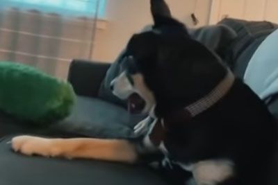 Dog Unintentionally Hits Owner With Squeaky Toy Pickle In Face