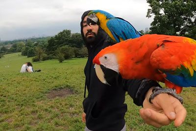 Two Brothers Take Two Parrots On A Ride With A Bicycle