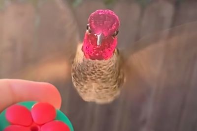 Hummingbird Waits Outside The Window For His Favorite Guy
