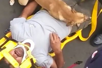 Loyal Dog Doesn't Want To Leave The Injured Owner Who Is Getting Paramedics
