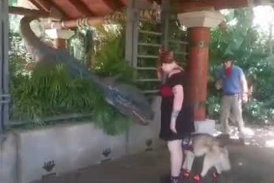 Service Dog Meets Fake Dinosaur At Universal Studios