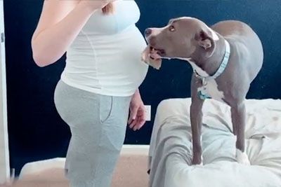 Pittie Can't Stop Pushing Her Snout Into Her Mom's Pregnant Belly
