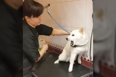 Groomer Calms Angry Dog Patiently