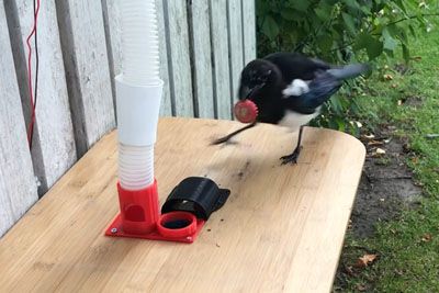 Smart Magpie Recycles Bottle-Caps To Get Food