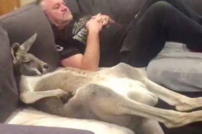 Rescue Kangaroo Insists On Daily Couch Cuddles With Dad