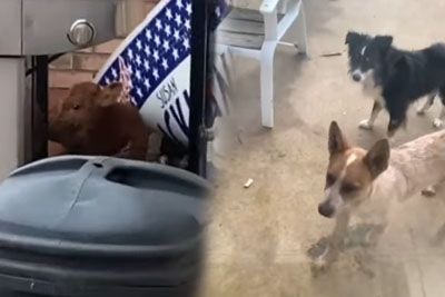 Guy Checks On His Dogs, Realizes They've Brought Home An Unusual Friend