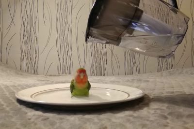 Bird Shows Its Cleaning Routine After Owner Pours Water On A Plate