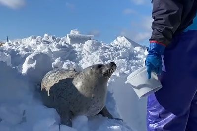 Adorable Seal Doesn't Let Human To Steal His Snow