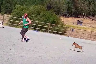 Internet Is Falling In Love With A Tiny 3-Day-Old Pony Chasing A Man