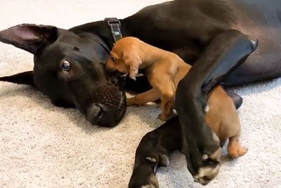 Tiny, Scared Puppy Falls In Love With A 120-Pound Great Dane