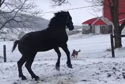 Horse Gets Excited After Owner Lets Him Play In The Snow