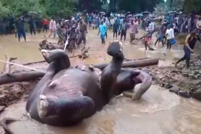 Rescuers Save Elephant Stuck In Flooded Pit After Two-Hour Operation