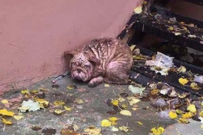 Rescuing Abandoned Bulldog In Cold Streets Who Ate Leaves To Survive