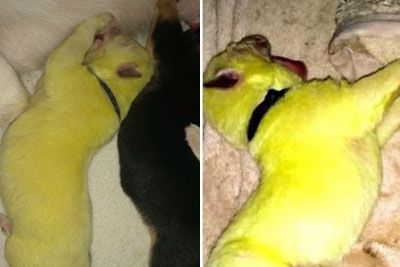 A German Shepard Puppy Was Born With A Lime Green Coat In North Carolina