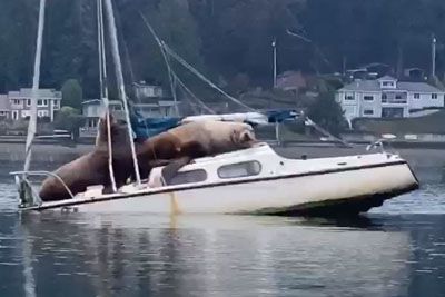 Two Giant Sea Lions "Hijack" A Sailboat In Adorable Video