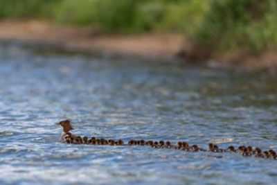 People Can't Stop Watching This Video Of "Super Mom" Duck Towing Her 76 Ducklings