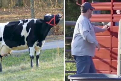Rescued Cow Won't Stop Crying Until Finally Man Pulls Up And Opens Trailer Doors