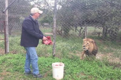 Man Feeds An Angry, Injured Lion After He Is Saved From Poachers