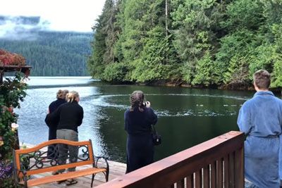 Humpback Whales Swim Right Outside Lodge On Canadian Lake
