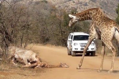 Giraffe Tries Saving Her Calf From Hungry Hunting Lions