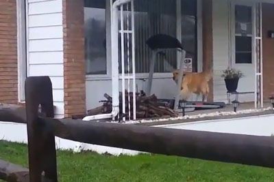 Man Walks Near House, Captures A Hilarious Moment With Dog Doing This