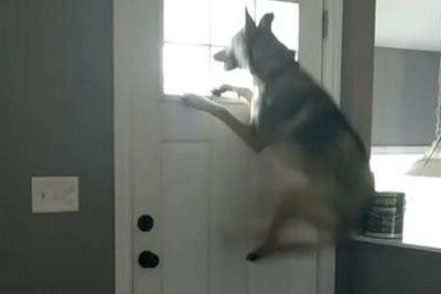 WATCH: German Sheperd Realizes His Owner Isn't Behind Him Any More