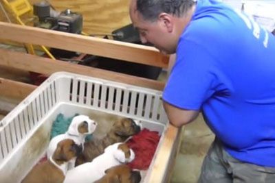 Dad Begins Singing To Puppies And In No Time Mom Captures Cutest Footage