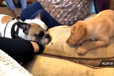 Owner Captured Most Adorable Moment When Puppy Gives Bulldog Half Of Her Biscuit