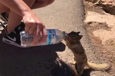 Thirsty Squirrel Drinks Whole Bottle Of Water In The Grand Canyon