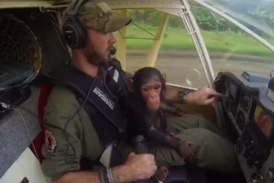Rescued Chimp Steals Whole Show While Flying Over Africa