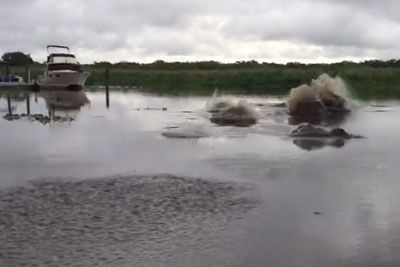 Manatees Cause Ripples When Man Throws Water In River