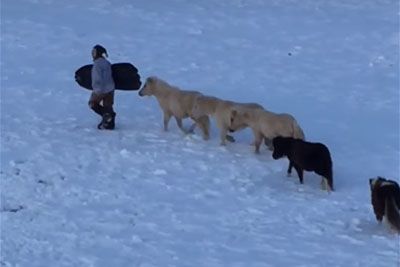 Boy Goes Sledding, Grandma Bursts Into Laughter When She Sees Mini Horses