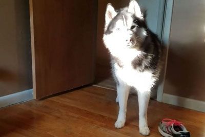Mom Confronts Husky About Missing Tennis Shoe, Records His Hilarious Response