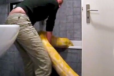 You Thought Washing Your Dog Is Hard? This Is How Bathing A Python Looks Like!