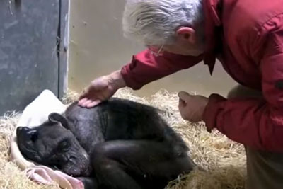 59-Year-Old Chimp Refuses To Eat And Drink. But Watch When She Sees An Old Friend